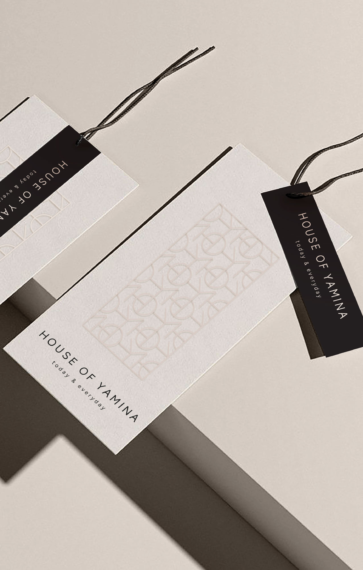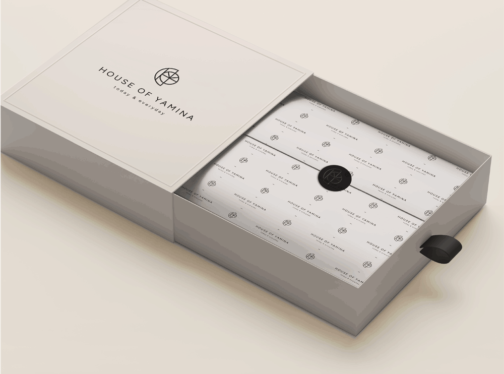 Crafted with meticulous attention to detail, House of Yamina features a sleek, modern and monochromatic brand identity, that reflects the sophistication and versatility of each design of each piece. Linear graphics and patterns play a key role in shaping the visual identity, adding depth and elegance while symbolizing inclusivity and diversity, welcoming women of all body shapes.